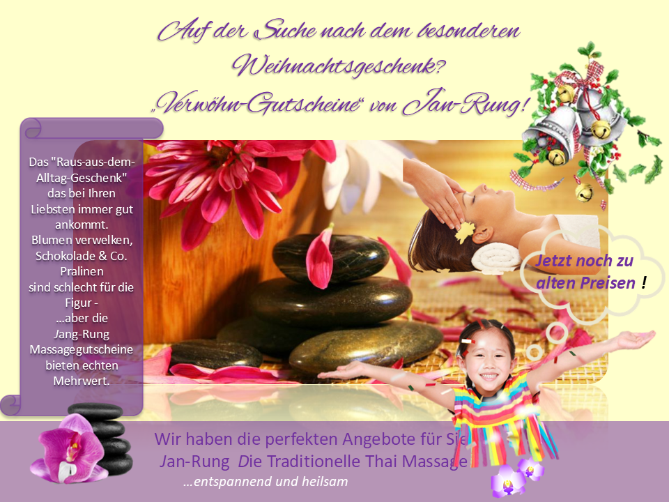 Bei Jan-Rung – Thai Spa Wellness & Massagen Oberhausen – finden Sie ein breites Angebot rund um Ihre ganz persönliche Wellness. Ein gesunder und entspannter Körper ist die Basis für einen gesunden und entspannten Geist. Daher sollte man beiden häufiger etwas ganz Besonderes gönnen.